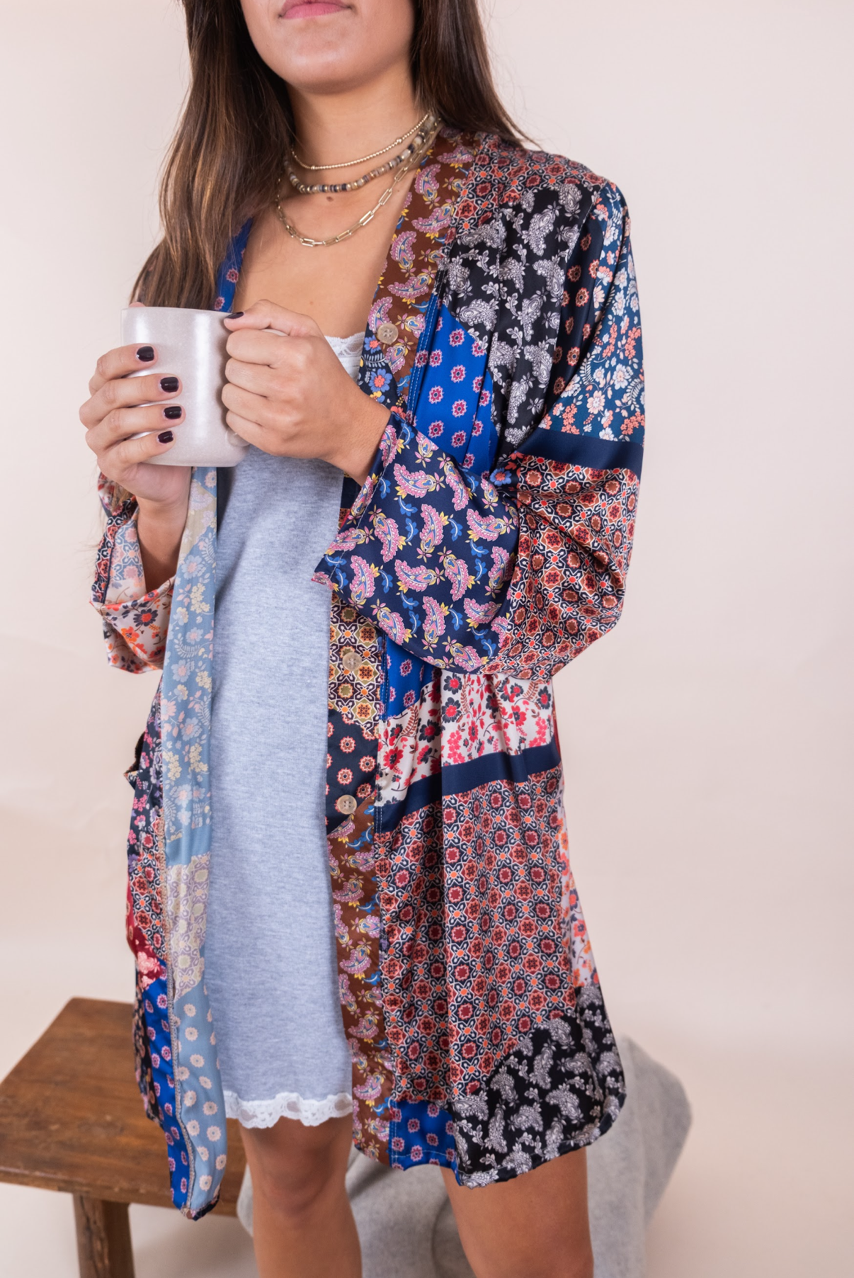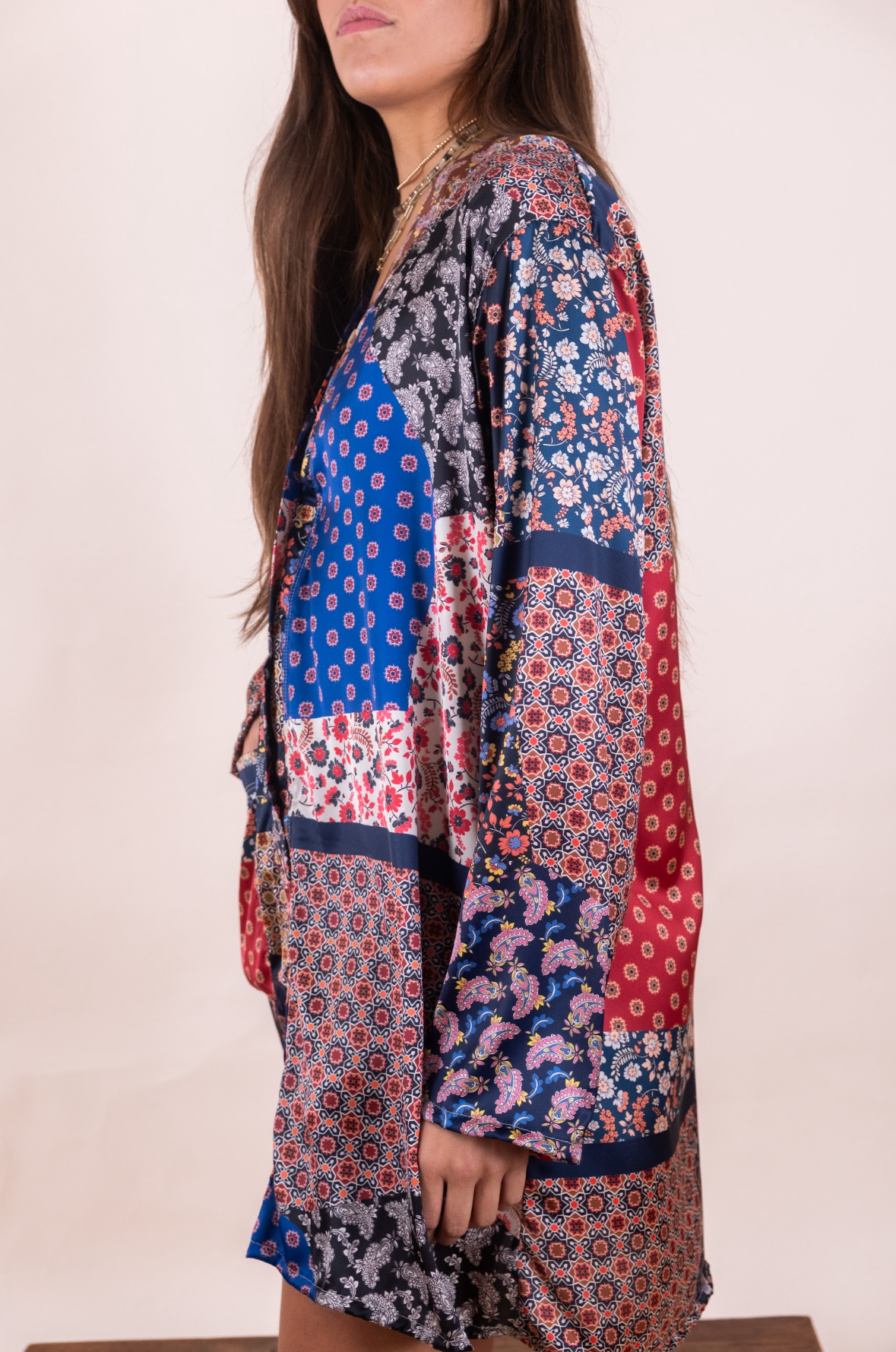 Salto de cama de seda floreado