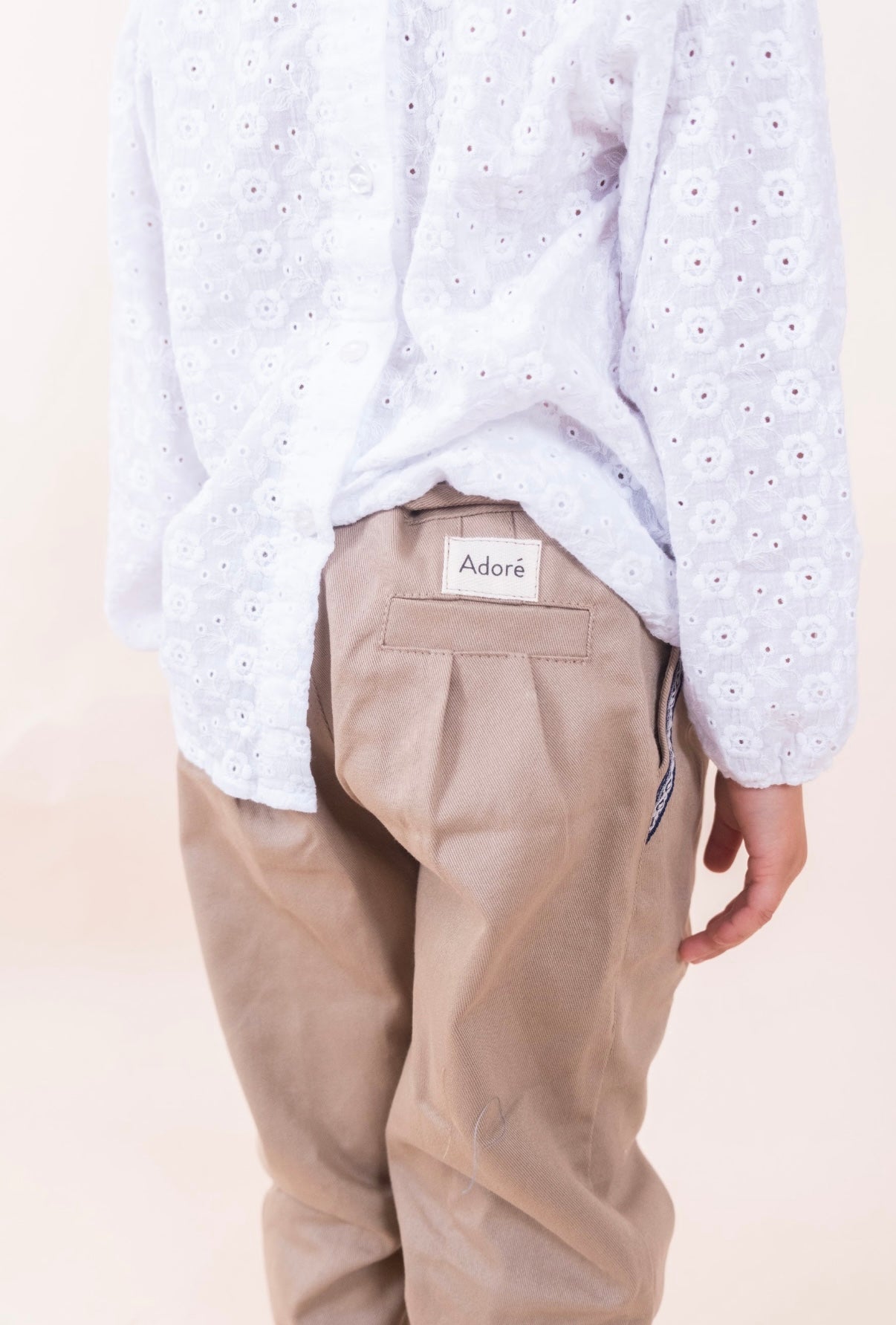 Bombacha de campo de gabardina beige con guarda pampa en la bolsillos.
